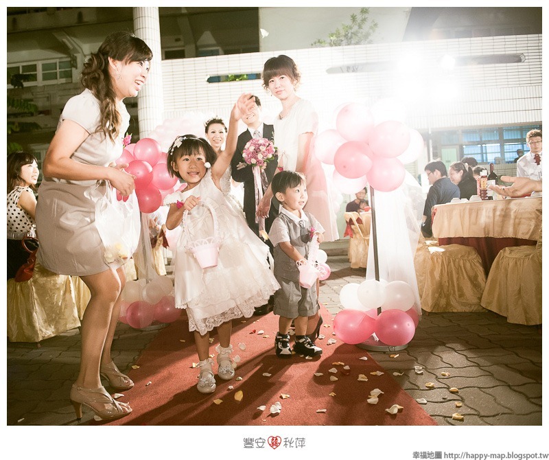 花童灑花,不過有時候花童很難控制,會有家長在旁邊陪伴或是需要先前的預演